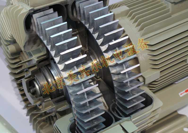 上圖為雙葉輪高壓鼓風機內部葉輪的安裝與固定樣式,一個葉輪為一個腔體,串聯增壓,這也是雙葉輪風機壓力高的原因。