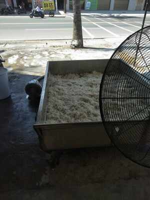 因熱水氣會(huì)上升,所以又單采用了一臺(tái)工業(yè)電風(fēng)扇,來(lái)加速物料上方空氣的流動(dòng),所以效率大大提升,縮短了工時(shí),節(jié)省時(shí)間,可比常規(guī)操作節(jié)省三分之二的耗時(shí)。
