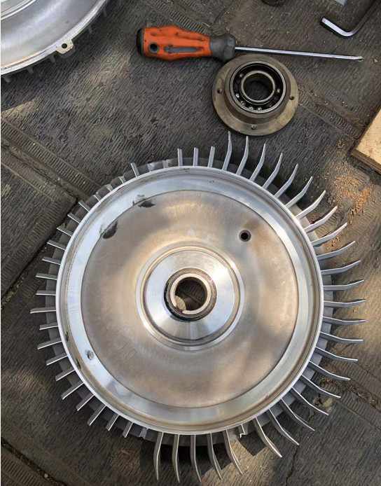 還有一種情況,這種情況比較少見,就是支撐前面板的軸承損壞,如果內部的滾珠脫落,那么會導致葉輪高度下降,風機葉輪與內壁摩擦掃堂,此時葉輪葉片是大面積的損壞,或者葉片全部打掉,是嚴重的一種。